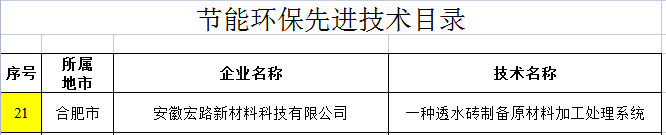 近日,安徽省經(jīng)濟(jì)和信息化廳發(fā)布,為促進(jìn)我省工業(yè)節(jié)能環(huán)保產(chǎn)業(yè)快速發(fā)展,經(jīng)企業(yè)申報(bào)、各地推薦、專家審核,省經(jīng)濟(jì)和信息化廳確定了2021年全省工業(yè)領(lǐng)域節(jié)能環(huán)保 “五個(gè)一百”推介目錄,其中安徽宏路新材料科技有限公司榮獲“節(jié)能環(huán)保優(yōu)質(zhì)生產(chǎn)企業(yè)”,我司發(fā)明專利“一種透水磚制備原材料加工處理系統(tǒng)”被授予“節(jié)能環(huán)保先進(jìn)技術(shù)”稱號!